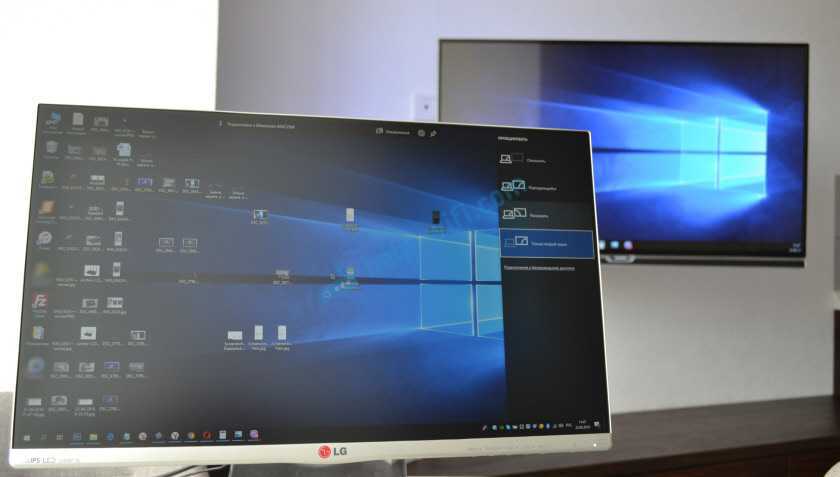 По умолчанию он подключается в режиме «Расширить». Но режим можно сменить через меню Win + P уже после подключения. На экране будет отображаться небольшая менюшка с настройками трансляции изображения на беспроводной дисплей.