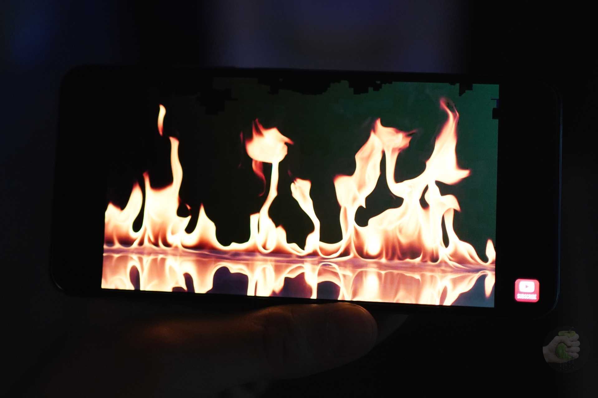 Во-вторых, телефон выдавал странные артефакты в тех случаях, когда чёрный цвет меняется на белый. Подобные контрастные переходы разочаровали. Проблема всплывает не всегда, а в условиях недостаточной освещённости — проще говоря, когда смотришь на экран в потёмках. Для наглядности вот пример с чёрными областями на изображении: