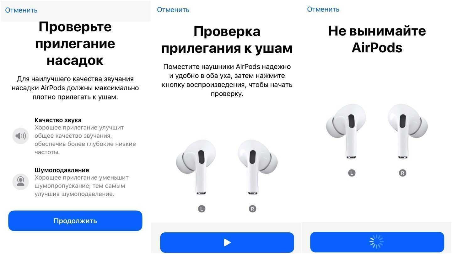 Наушники очень легко подключить и настроить — надо лишь открыть крышку, поднести к iPhone или iPad (поддерживаются модели начиная с 6S и SE) и следовать инструкциям на экране. Помимо базовых настроек у Pro-версии есть еще такая вещь, как «Проверка прилегания к ушам».