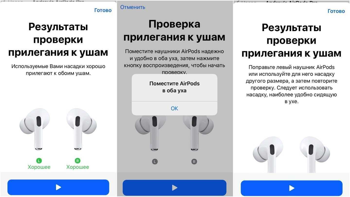 Честно сказать, я немного теряюсь объяснить, зачем это нужно. Система реагирует, если вы не вставили наушник или если вы его положили в ухо так, что он вылетит при любом движении. В остальных случаях, глубоко я засовывал наушник в ухо или слабо — тест проходил на ура.