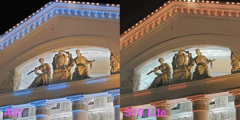 А теперь пара примеров, почему камеры Samsung Galaxy A51 совершенно точно не «Ах». Вместе с A51 в январе на рынок вышел субфлагман — Galaxy S10 Lite Night. У него сенсоры тоже не топовые, но по качеству всё-таки повыше нашего середнячка, особенно заметно в сравнении шириков. Ниже примеры: