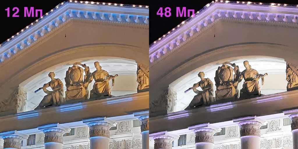 В любом случае, я рекомендую снимать всегда с разрешением 48 Мп. Ночных условий это тоже касается. Таким образом из кадра получается вытащить больше как в плане детализации, так и общего качества. Не будет работать лишь режим HDR, а он выручает только в особо контрастных сценах, когда много теней, или солнца, или же наоборот — тёмных участков снимка. Имейте в виду.