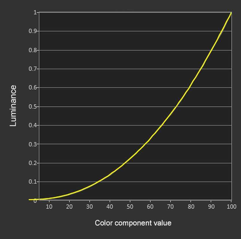 Яркость OLED против значения компонента цвета. Зависимость меняется нелинейно