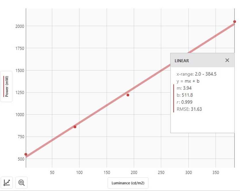 Для темно-серого цвета выходная яркость составила 0,3% от яркости белого, поэтому она должна выдавать 0,3 нит. 4 мВт / нит × 0,3 нит = 1,2 мВт, поэтому темно-серый должен потреблять только на 1,2 мВт больше, чем чистый черный.