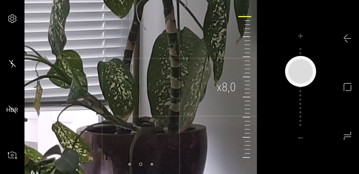 А в интерфейсе появилось интересное нововведение: кнопку спуска затвора теперь можно потянуть вверх, чтобы приблизить изображение через цифровой зум, а также вниз, чтобы вернуть картинку в исходное положение. Это очень удобно.