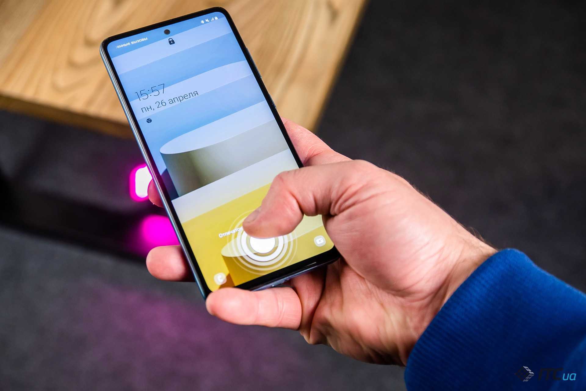 Ещё одна фишка — сканер отпечатков пальцев под экраном. 10 из 10 корректных срабатываний, что недурно.