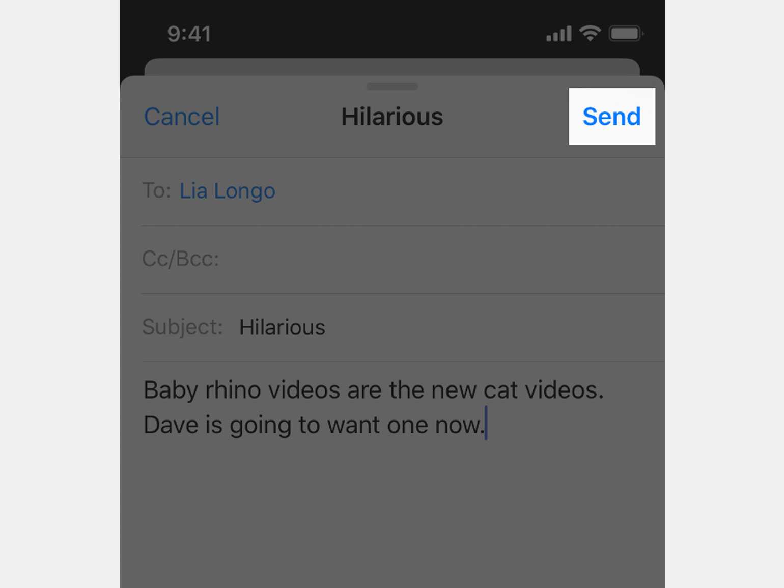 Кнопка действия ― отправки письма ― расположена в правом верхнем углуИзображение: Apple Human Interface