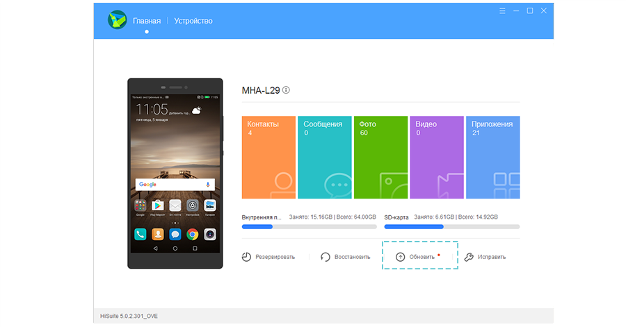 Загрузите и установите на компьютер фирменную программу HiSuite с официального сайта производителя. Подключите телефон к ПК через USB-кабель и следуйте инструкциям программы.