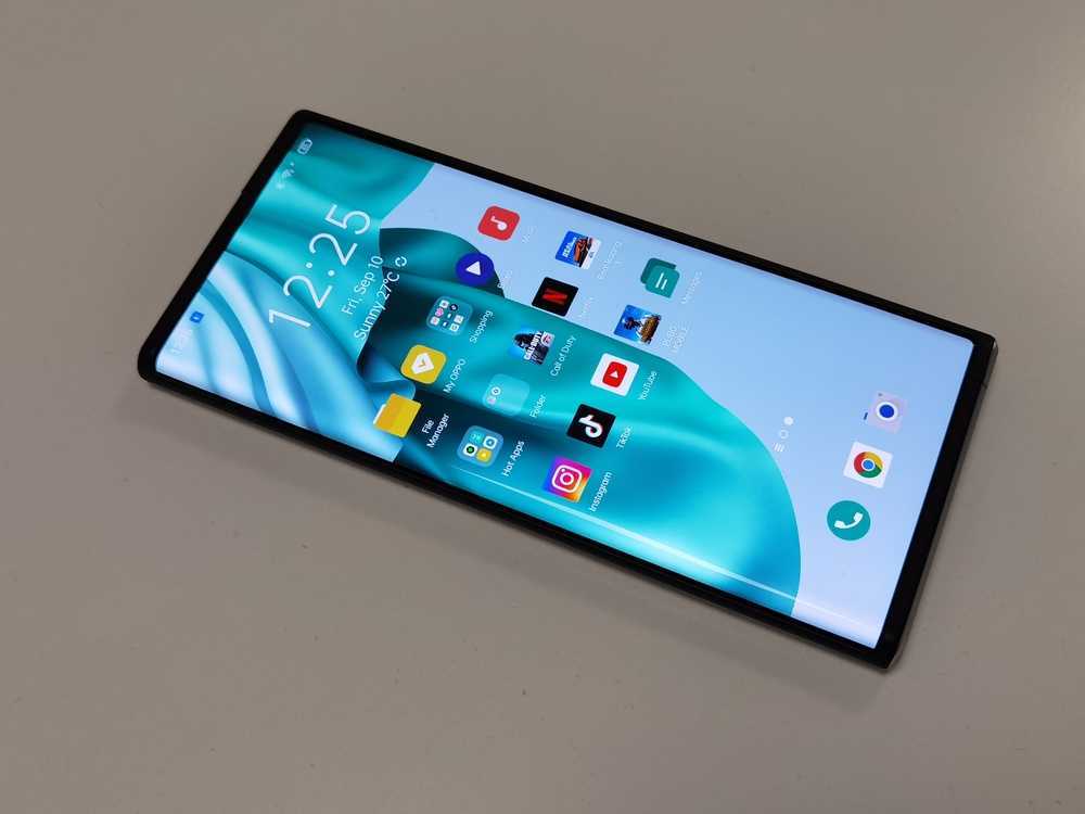 Интересно, что он делает это самостоятельно, благодаря двум моторам. Вам достаточно слегка коснутся нижнего края кнопки питания и с тихим жужжанием экран начинает сдвигаться вправо. Это невероятно, но он будто раздвигается. На этом этапе вы можете подумать о том, что он сворачивается, но OPPO не сматывает выдвижной экран в рулон. Он огибает вращающийся элемент и прячется за задней панелью. Если нажать или слегка провести по верхнему краю кнопки питания, то OPPO X 2021 принимает форму обычного 6,8-дюймового смартфона.