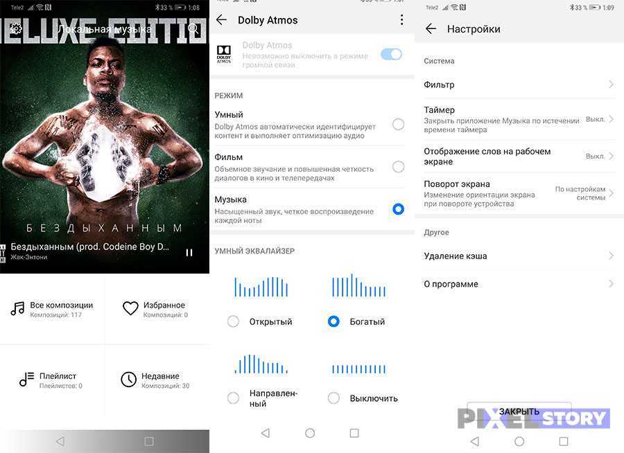 Качество звука через комплектные наушники достойное, где-то на уровне EarPods/AirPods. Mate 20 Pro также получил поддержку Dolby Atmos, благодаря которому можно гибко настроить частоты и режим звука под себя.