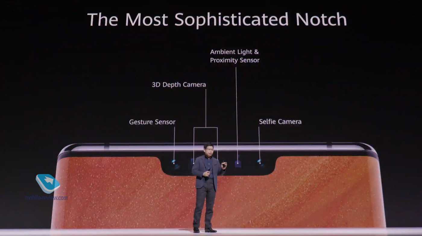 Начну с того, что в верхней части дисплея смартфона остался вырез, от которого большинство производителей так отчаянно пытались избавиться в этом году. В Huawei же решили не играться с инженерными решениями, а использовать уже проверенный подход. В итоге вырез есть, и возможно не всем он понравится. Тем не менее, не могу не отметить, что он стал меньше по сравнению с Mate 20 Pro. И теперь содержит сенсор жестов, две камеры, которые измеряют расстояние до объектов, датчик освещения и приближения, а также фронтальную камеру.