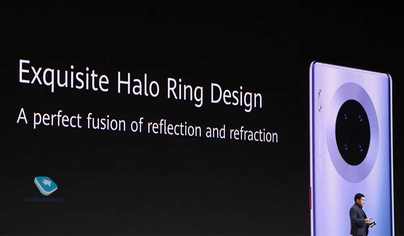 Если вы смотрели тизерный ролик Mate Series 30, то могли заметить, что окружающие вещи завязаны на взаимодействии со светлым кругом. Так вот, круг – это часть оформления задней панели Mate 30 и Mate 30 Pro. Он является декоративной вставкой с зеркальным эффектом вокруг камеры.