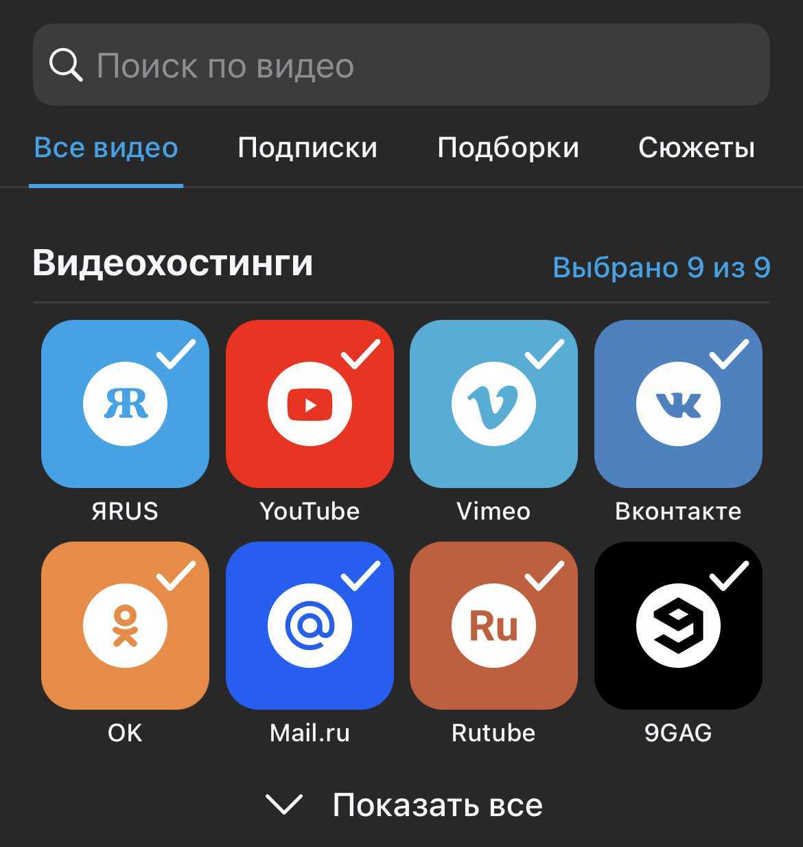 Встроенный видеоплеер позволяет просматривать ролики из различных видеохостингов, включая YouTube и Vimeo. Если какой-то хостинг не нужен, его можно отключить.