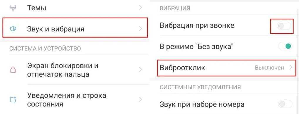 Отключение вибрации во время входящих звонков и прикосновений к экрану
