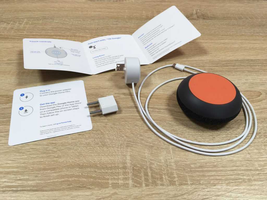 В коробке с Google Home Mini мы находим саму колонку, адаптер питания (110-220 В) со спаянным Micro-USB кабелем и краткую инструкцию. Также как и в Амазон Эхо Дот, в Хоум Мини нет встроенного аккумулятора. Нижняя поверхность устройства покрыта специальной противоскользящей резиной, она предотвращает случайные падения устройства с поверхностей столов, тумб и т.п. Используя переходник с US-вилки на европейскую, подключаем Google Home Mini в сеть.