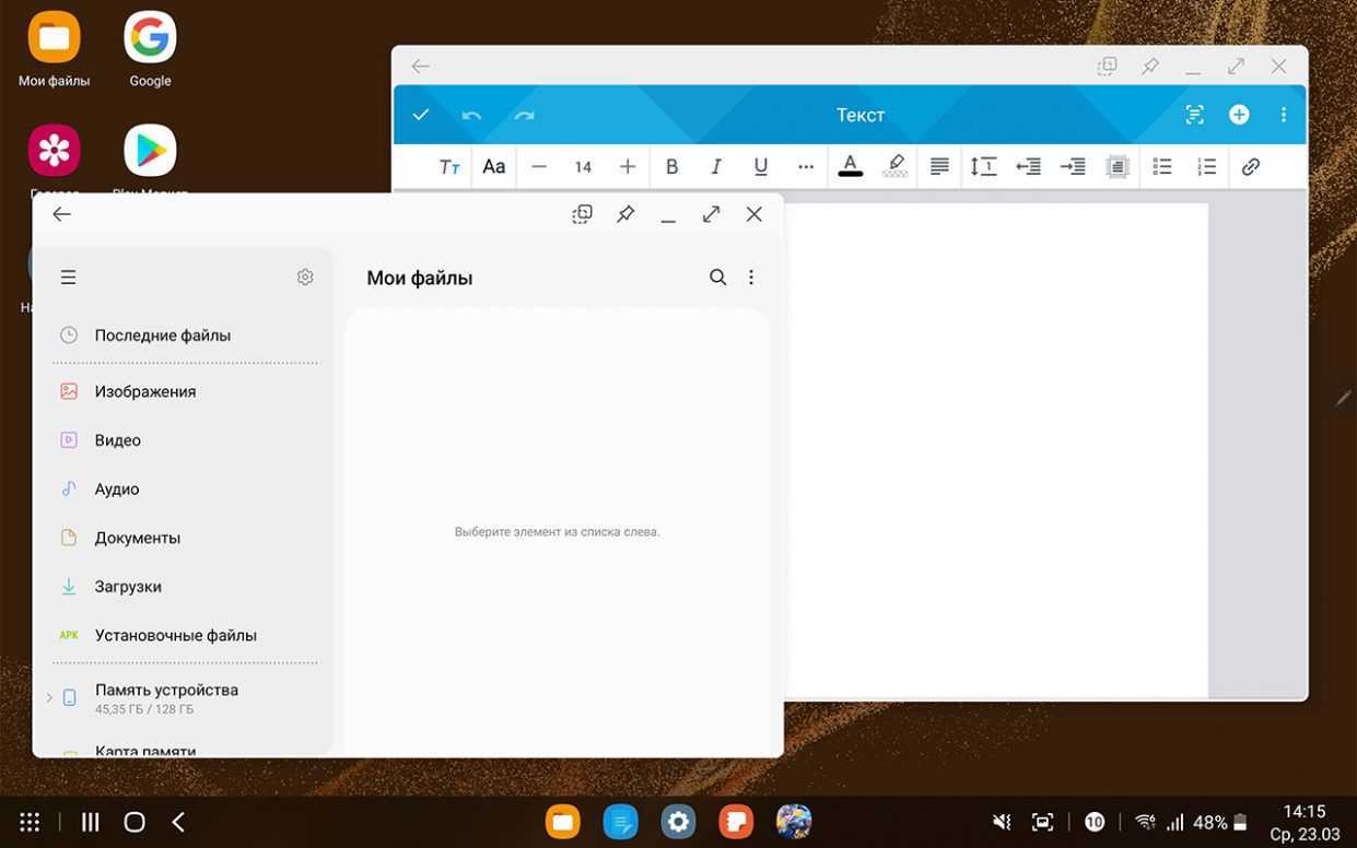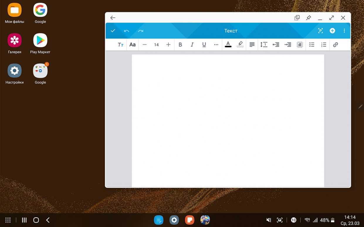 Функция имитации полноценного рабочего стола ПК под названием Dex, которая активируется на смартфонах Samsung при их подключении к монитору или телевизору, в планшете может быть включена без всяких подключений.