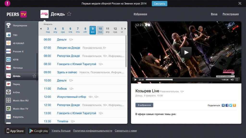 - возможность управления эфиром с помощью паузы и перемотки назад;