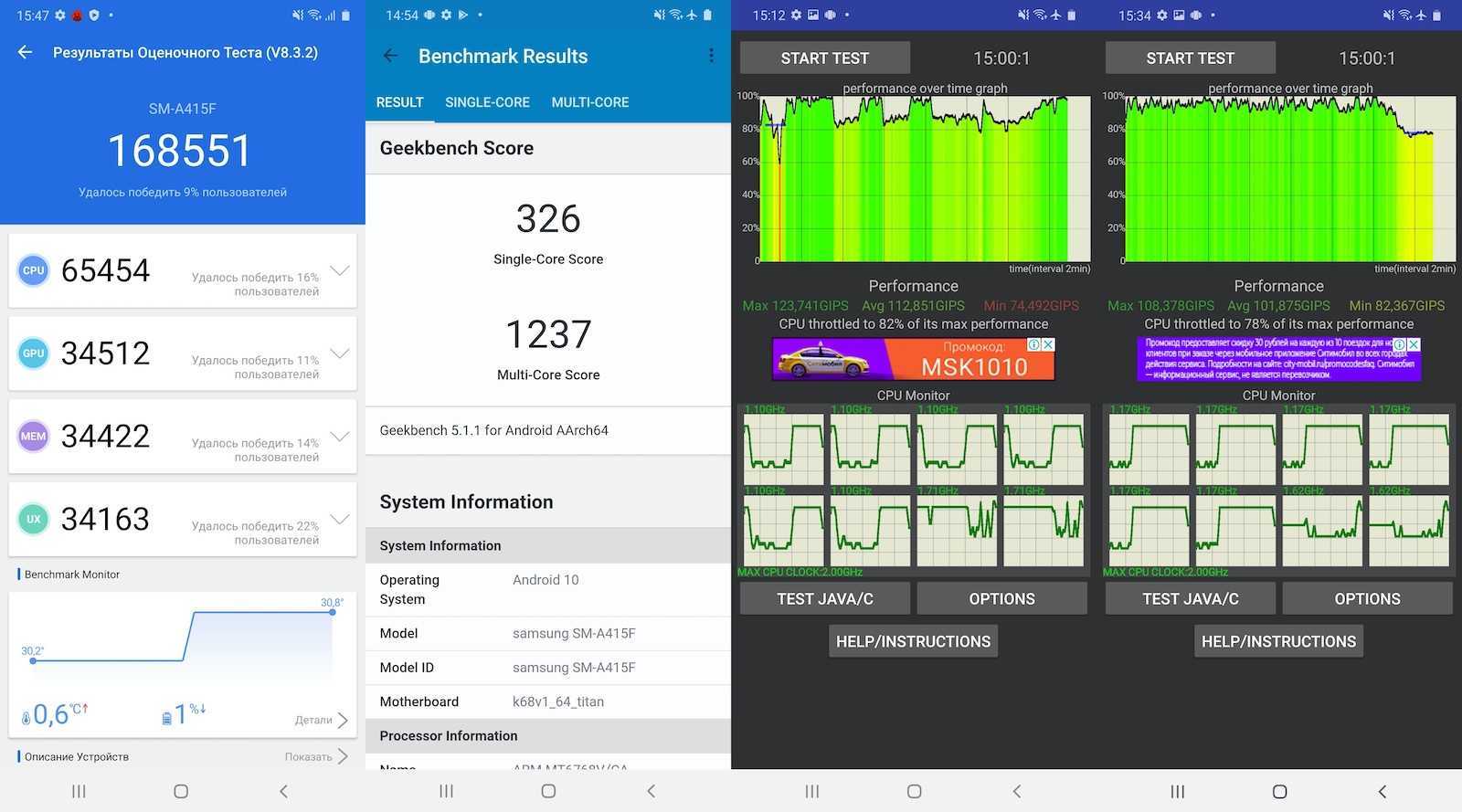 Samsung A51 побеждает по части автономности, что логично, учитывая более высокую емкость аккумулятора.