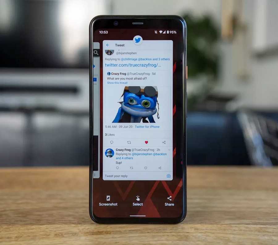 Google называет дисплей многозадачности (контейнер приложений) экраном «Последние». В Android 11 на нем внизу есть несколько новых кнопок. Скриншот – снимок экрана переднего приложения в контейнере (не весь экран многозадачности, а только самого приложения). Кнопка «Поделиться» тоже делает скриншот и открывает список программ, чтобы вы смогли немедленно отправить его кому-нибудь.
