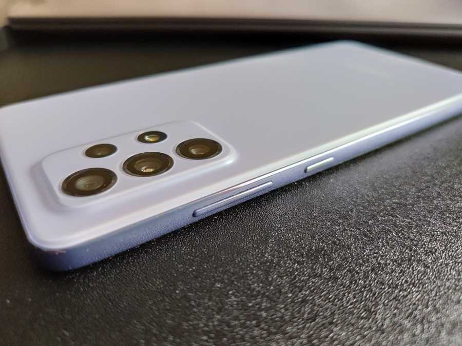 Основные элементы дизайна А-серия позаимствовала у флагманской линейки Galaxy S, которая в этом году задала «моду» на обновленное оформление основной камеры. Если в прошлом году почти все модели Samsung имели платформу с камерами, которые располагались буквой «L», то в 2021 модуль можно назвать «3+2». Здесь три массивных сенсора выстроены в ряд, а вспомогательный датчик и вспышка (они меньше по размеру) съехали немного в сторону. В отличие от А32, в котором модуль камер никак не выделялся на корпусе, в А52 и А72 блок имеет заметные очертания и немного возвышается над корпусом. Но при этом отсутствует «переливание» в торцы, как это можно увидеть во флагманской линейке.