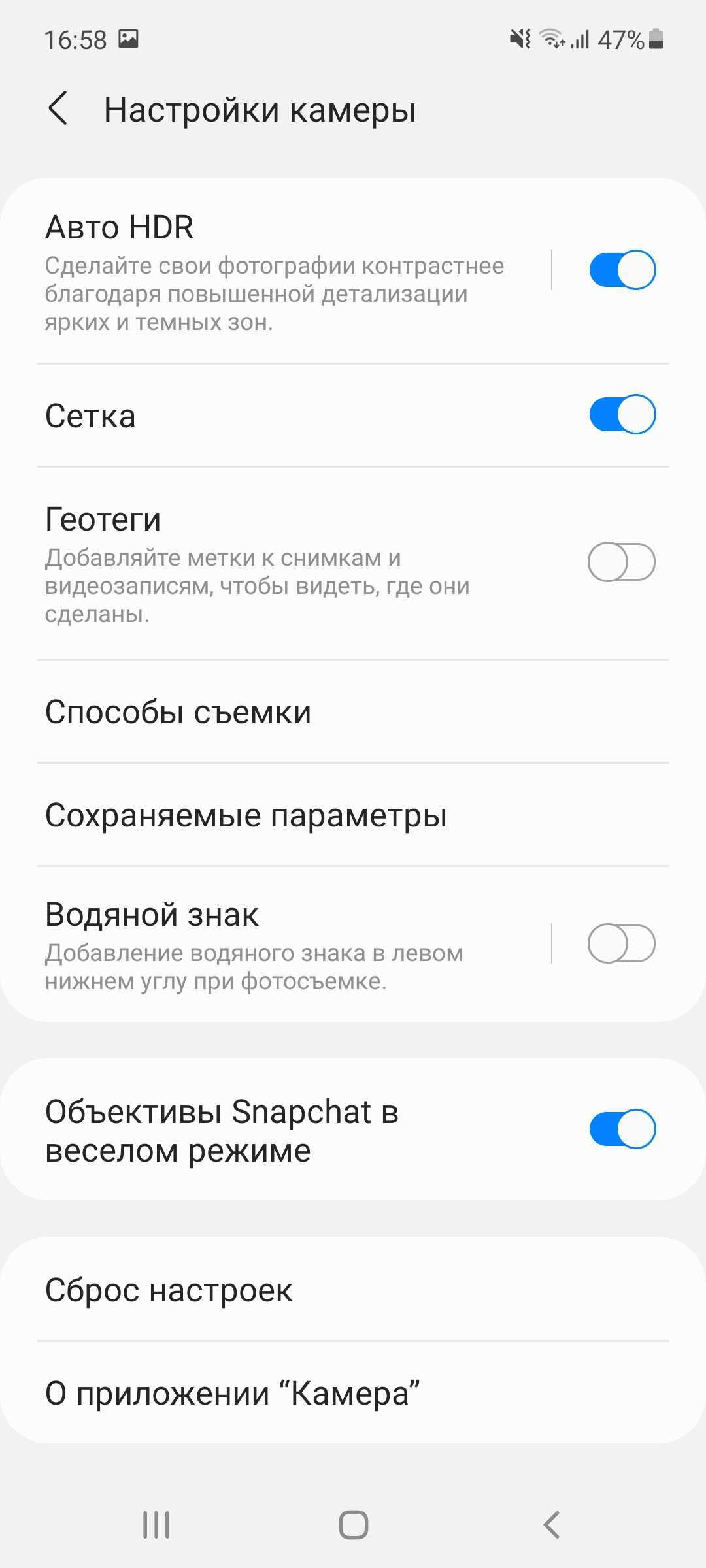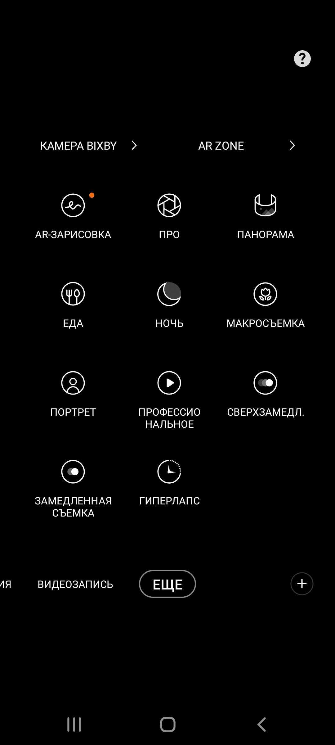 В приложении камеры предусмотрено множество режимов для разных типов съемки. Для видео здесь есть стандартный режим-универсал, Про-режим, гиперлапс, а также замедленная и сверхзамедленная съемка. Кстати, основной сенсор позволяет снимать UHD-ролики при 30 fps. Для фото – классический режим, ночь, макросъемка, ручной режим, портрет, панорама, инста-режим «Еда», а также мультифункциональный режим «Мультикадр», при котором одновременно снимается несколько кадров и роликов в разных форматах. Из нового – появился режим «Веселый» («Fun»), который использует фильтры Snapchat. Любителям баловаться с масками дополненной реальности может понравится. Камера Bixby, AR-Zone, фильтры и режим ретуши – это все осталось на месте.