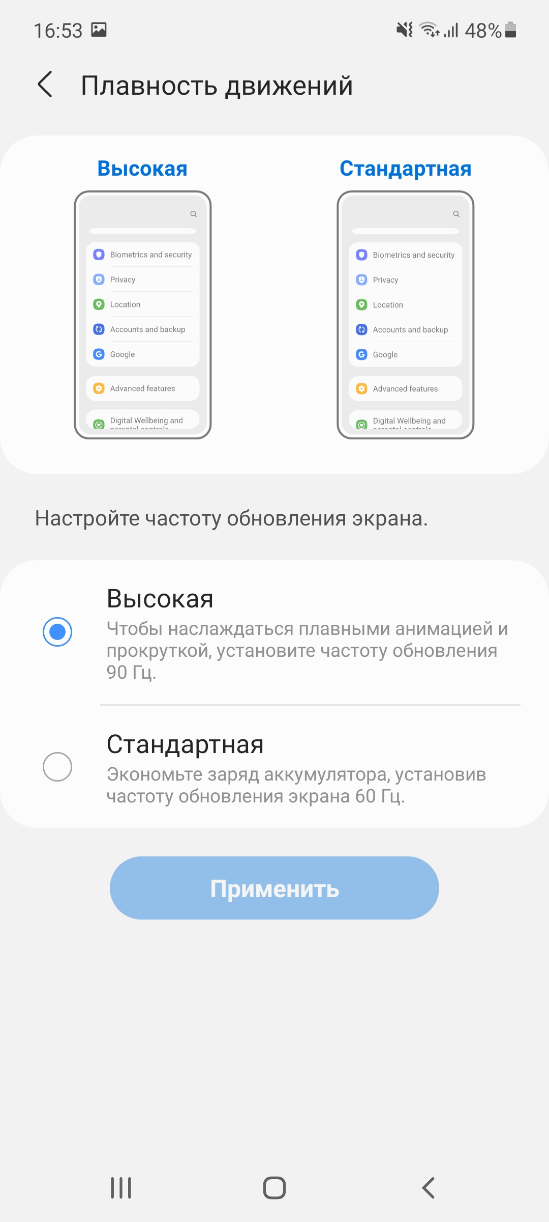 Samsung Galaxy A72 настройки экрана