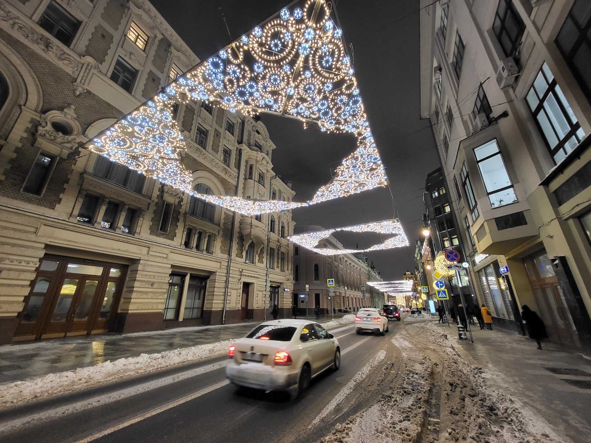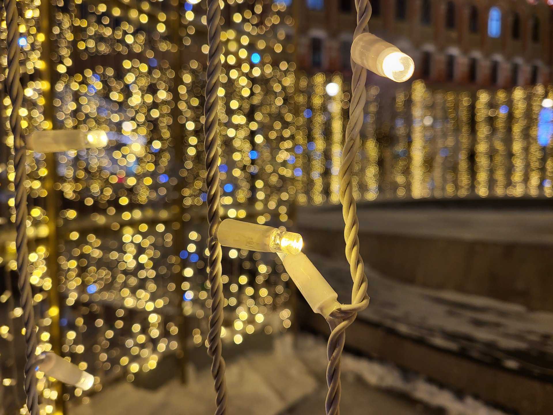По краям падает резкость, днём качество нормальное, а по вечерам уже всё сильно зависит от освещения Камера способна передать новогоднюю ярмарочную атмосферу, если не вдаваться в детали