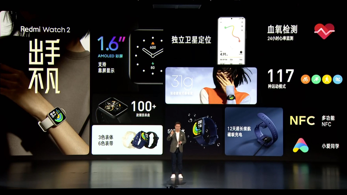 Помимо смартфонов на презентации также показали новые часы Redmi Watc 2.