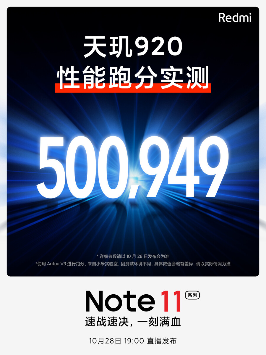 Модель Pro поднимает ставки по сравнению со стандартным Redmi Note 11. Вместо чипа Dimensity 810 здесь стоит уже более производительный чип Dimensity 920 . Таким образом, можно ожидать заметного повышения производительности благодаря более новым ядрам процессора и графическому ускорителю Mali-G68 MC4. По утверждению Xiaomi, чип набирает 500 949 баллов в AnTuTu v9.