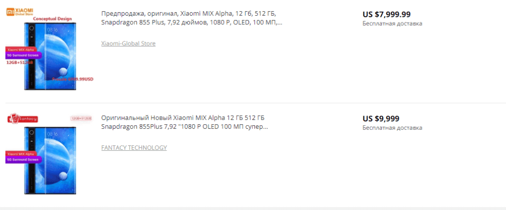 Старт продаж смартфона Xiaomi Mi Mix Alpha начался в декабре 2019. Анонсированная цена новинки 2800 долларов. Смартфон стал доступен для предзаказа на AliExpress за «космическую» цену – 10 000 $. За эти деньги можно купить два новых iPhone 11 Pro Max, но и у Mi Mix Alpha найдутся свои покупатели.