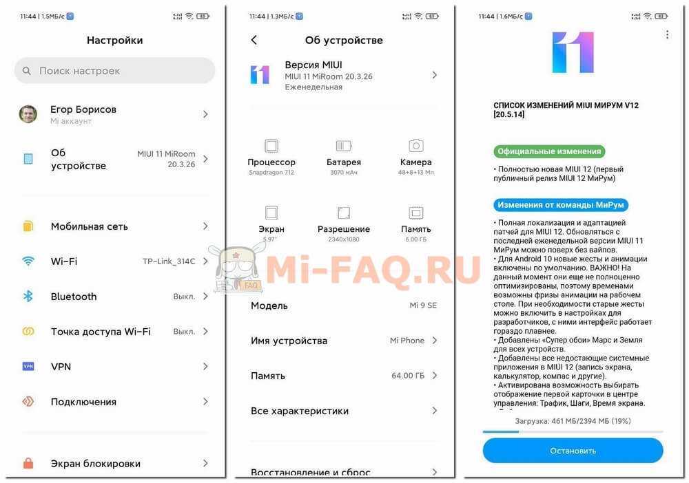 На скриншотах обновление MIUI 11 до MIUI 12 по воздуху. Прошивка локализованная от МиРум.