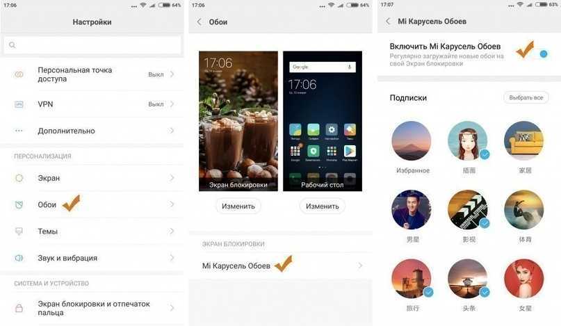 Позиционируются они, как обои высокого качества, так и есть на самом деле. Включаем карусель и выставляем частоту смены изображения на экране. От 15 минут до раза в сутки. Кроме этого, в настройках будут отображены все имеющиеся подписки. Выбрать и рассортировать, что включать, а что нет, дело ваше. Для большего эффекта, можете активировать подкачку из интернета, но помните о трафике.