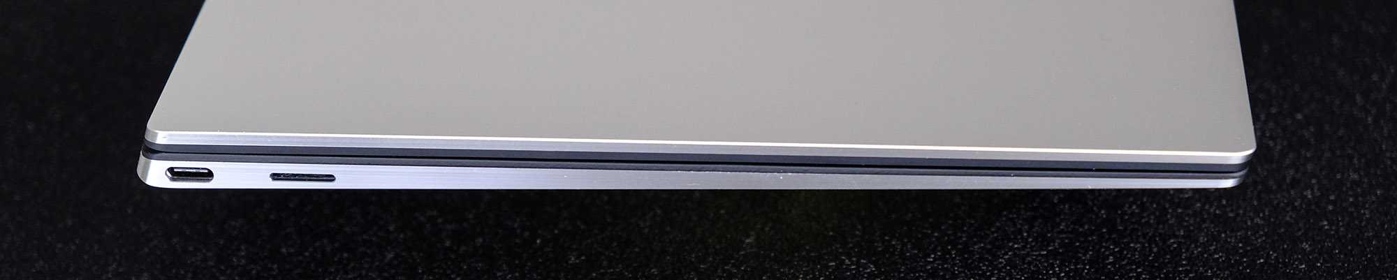 Оба порта USB Type-C поддерживают DisplayPort 2.0 и технологию зарядки мобильных устройств Power Delivery, плюс через них, естественно, можно заряжать батарею. Из–за крайне компактных размеров корпуса модели все габаритные интерфейсы здесь просто не поместились, так что такая лаконичность здесь вынужденная. Впрочем, для подключения полноразмерного USB производитель комплектует ультрабук адаптером, который сглаживает эту проблему.