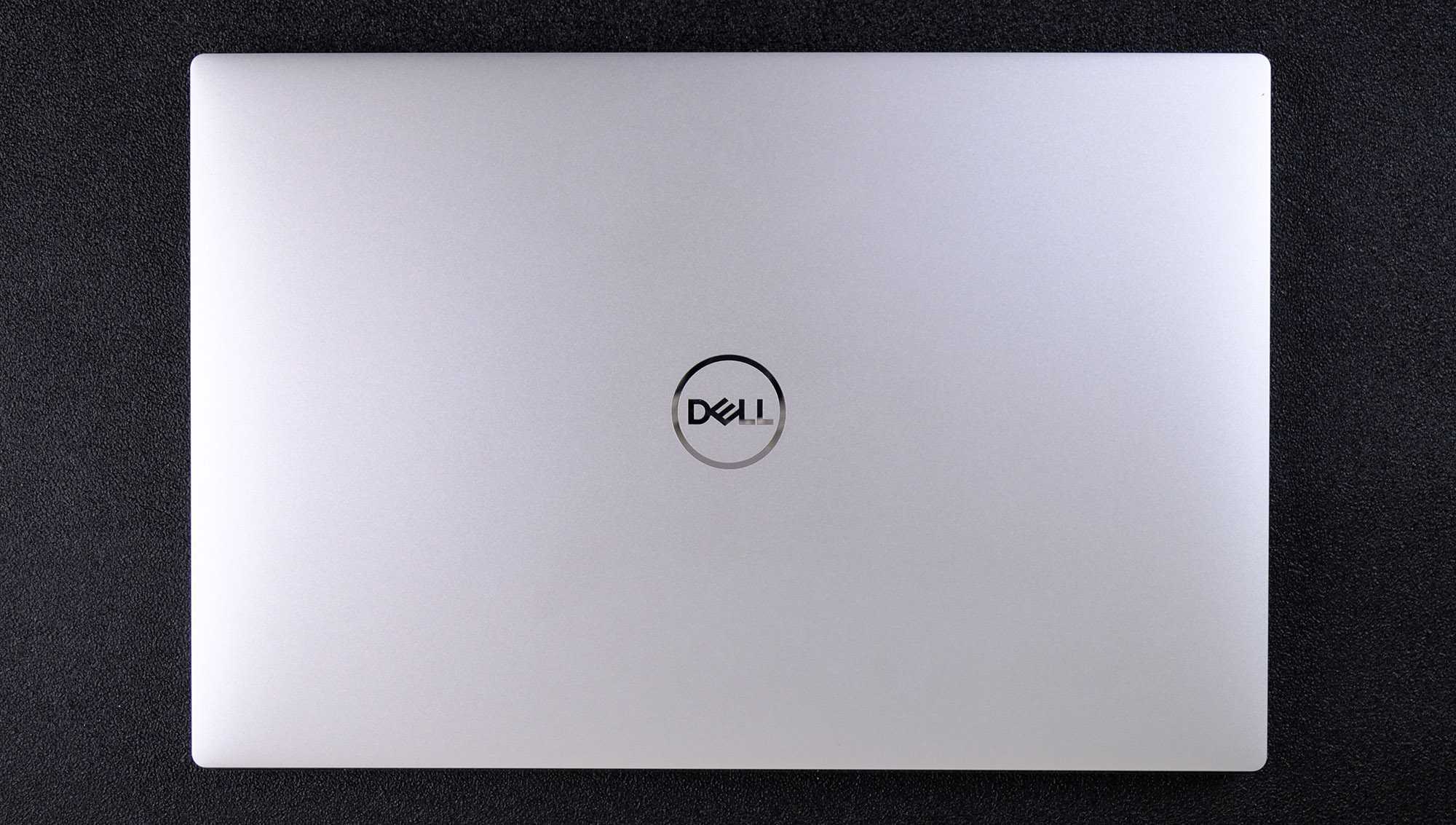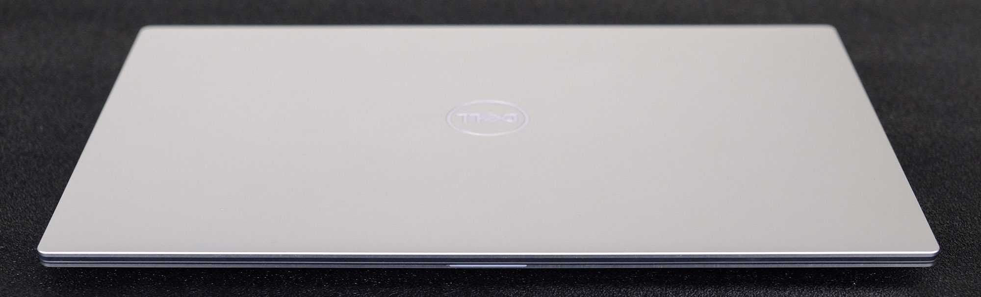Нам достался образец модели в чёрно-серебристой расцветке (крышка – серебристый металлик, топкейс и окантовка — чёрный). Смотрится он хорошо, из-за металлического корпуса в руках ультрабук ощущается как монолитный. На верхней панели есть только логотип Dell по центру.