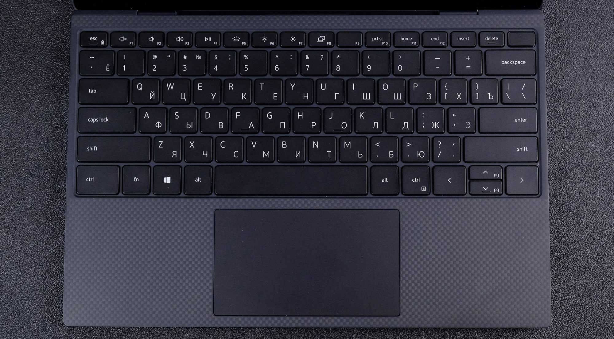 Раскладка классическая для ультрабуков 13”. Удалось сохранить длинные клавиши shift, ctrl, backspace, но вот стрелкам как обычно пришлось туго – две клавиши ужали до размеров одной. Кнопка включения размещена в верхнем правом углу. На ней нет символов, так как она одновременно содержит в себе сканер отпечатка пальца.