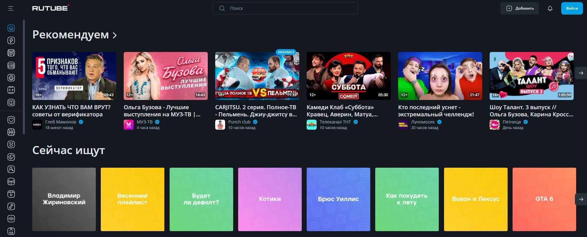 Rutube является российским аналогом YouTube и принадлежит «Газпром-Медиа». Функциональность площадки близка к видеосервису Google, а вскоре появится функция авторизации через «Госуслуги», которая позволит публиковать видео без премодерации. На платформе наиболее популярны форматы развлекательных шоу, онлайн-трансляции, стримы ТВ-каналов, блоги, мастер-классы, телепередачи, кино и сериалы. Также Rutube производит оригинальный контент в нескольких категориях: развлечения, юмор, спорт, киберспорт, образование, путешествия и др. У сервиса есть приложение для iOS, Android, HarmonyOS и платформ Smart TV.