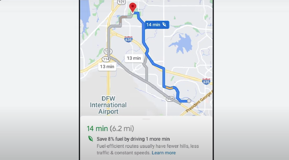 В октябре Google добавила в свой сервис Maps экологичные маршруты, а также обновила велосипедные маршруты и данные о самих велосипедах и самокатах. Новая модель оптимизирует автомобильные маршруты таким образом, чтобы сэкономить топливо. Ее работа основана на технологии искусственного интеллекта и исследованиях Национальной лаборатории возобновляемых источников энергии (NREL) министерства энергетики США. Сейчас она работает на территории Соединенных Штатов на Android и iOS. В Европе и за ее пределами экологичные маршруты появятся в 2022 году.