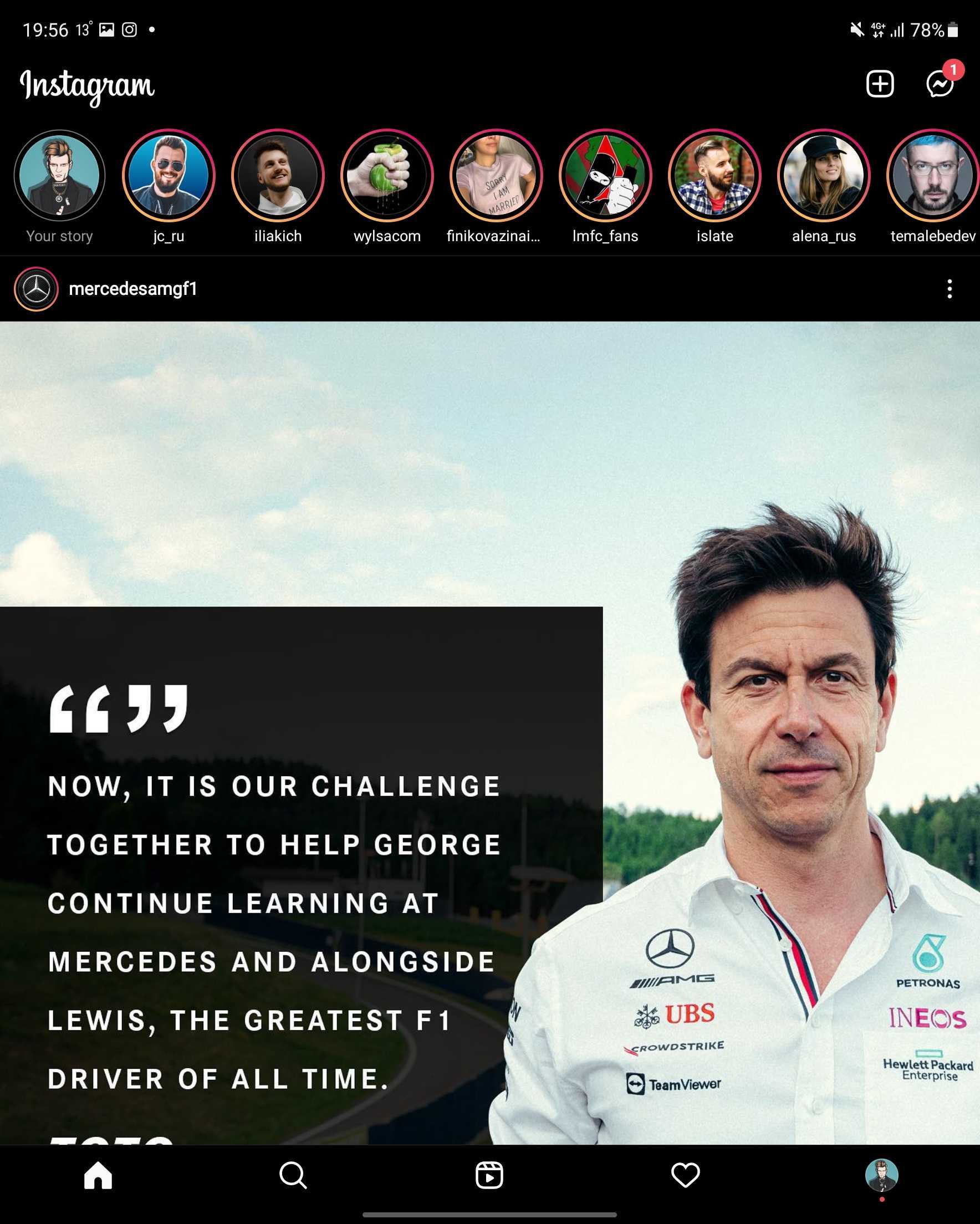 Можно установить необходимое вам соотношение сторон для ряда приложений — например, для Instagram. Владельцы Fold2 помнят, что тот же Instagram не открывался на весь экран, оставались полосы слева и справа. А теперь «Инстик» выглядит просто прекрасно, на весь экран. Одно но: в сторис не влезает текст сверху и снизу.
