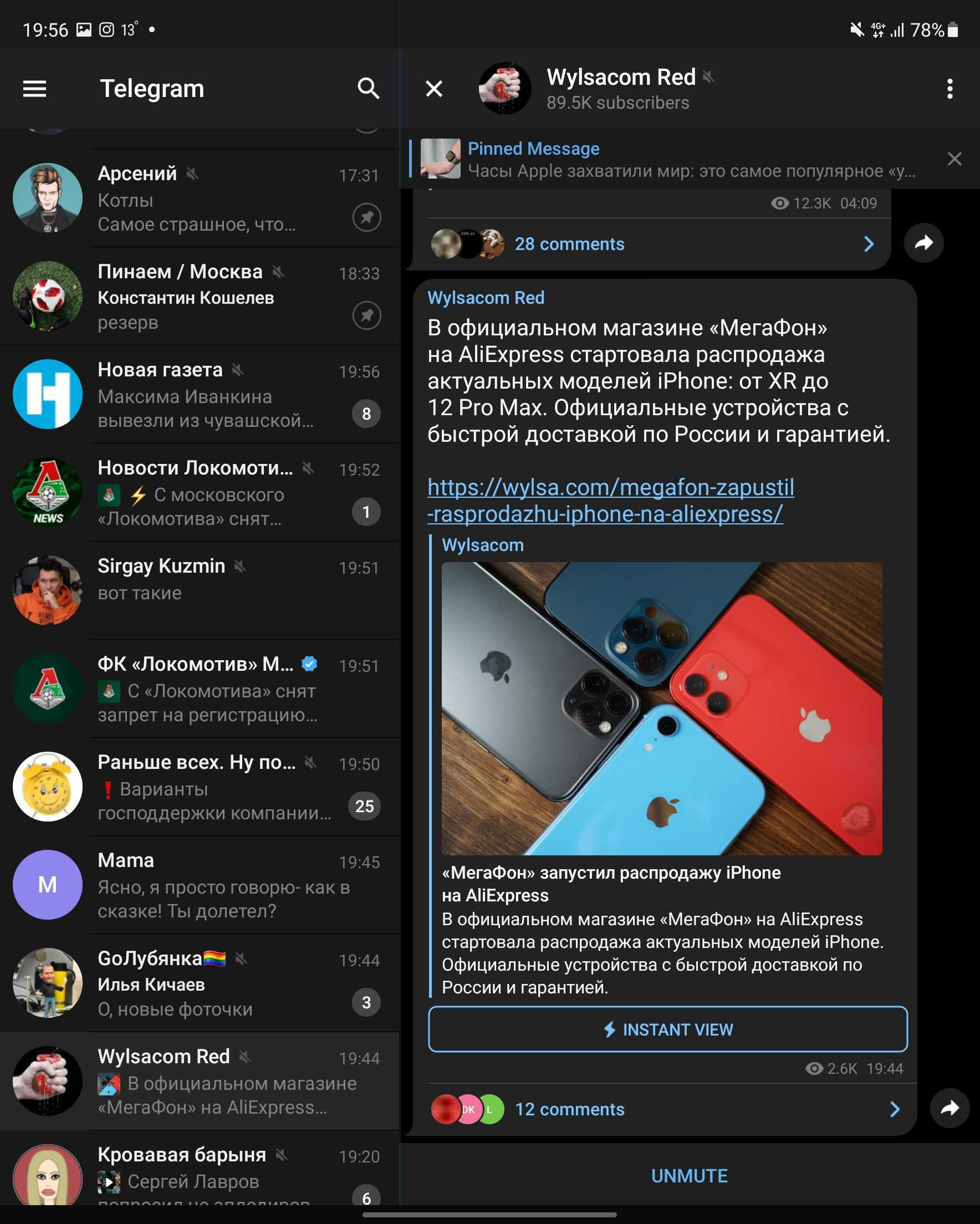 В некоторых приложениях, например в Telegram, слева отображается список контактов, а на правой половинке виден чат. Имейте в виду, что для такого отображения вам в настройках нужно уменьшить размер шрифта.