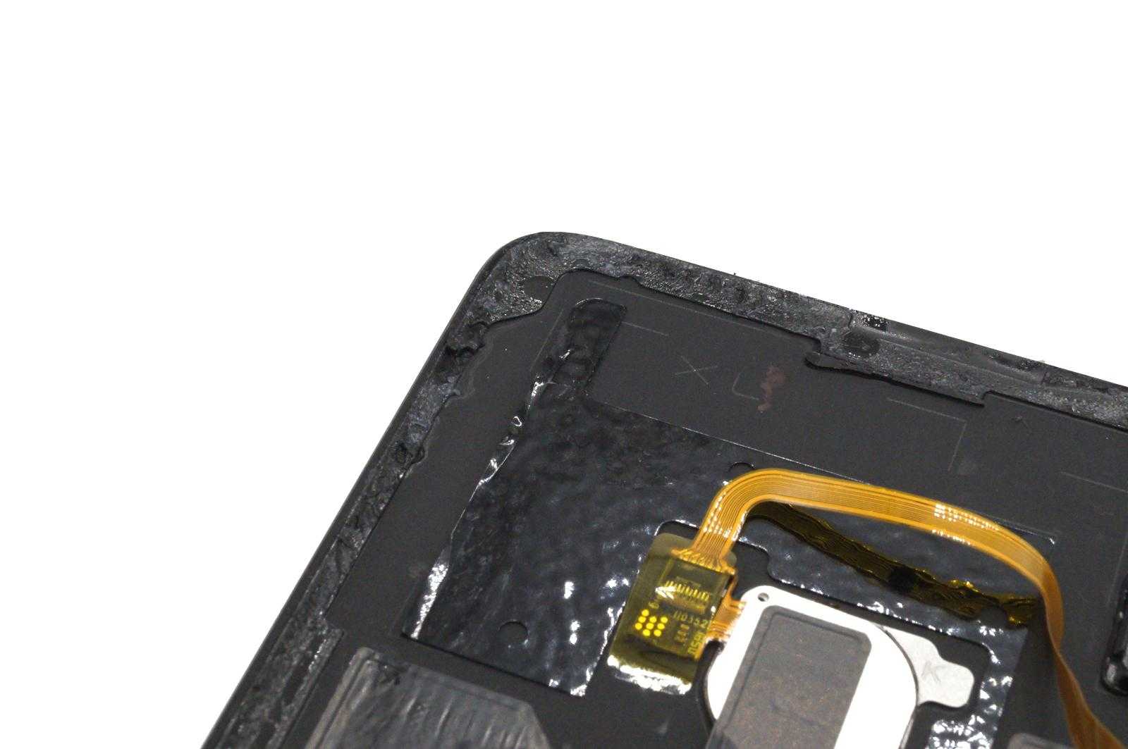 - Дисплейный модуль также приклеен к корпусной основе — прогреваем и бережно снимаем.