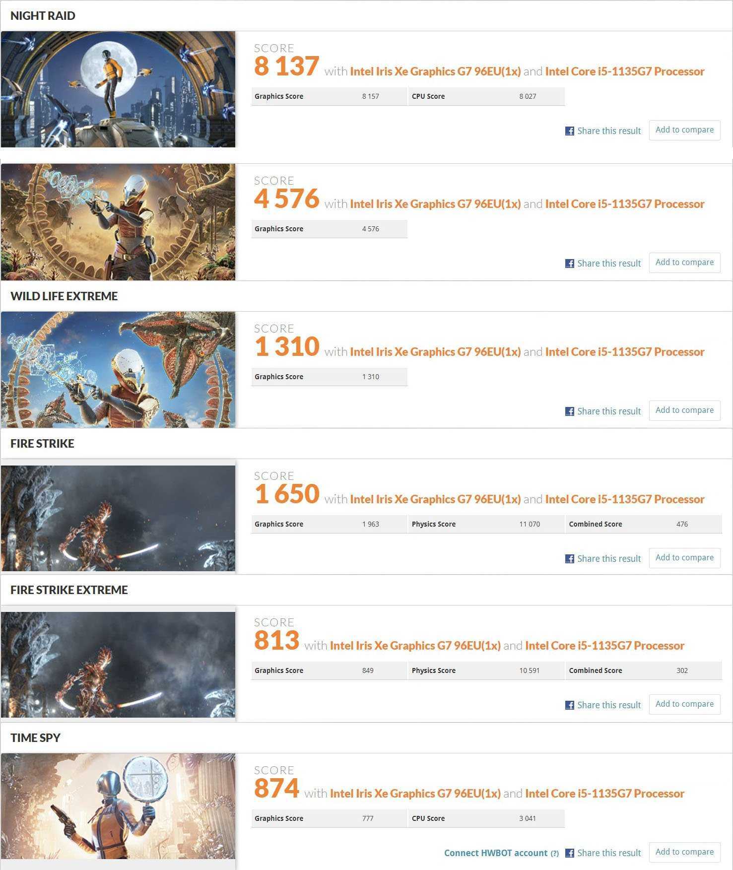 Начнём традиционно с комплексов бенчмарков 3DMark. Тут, к сожалению, ничего нового не увидим – требовать от встроенной графики высоких баллов нельзя. Тем не менее, она прошла даже тяжёлый тесты, так что можно надеяться на комфортные FPS в нетребовательных к железу играх.