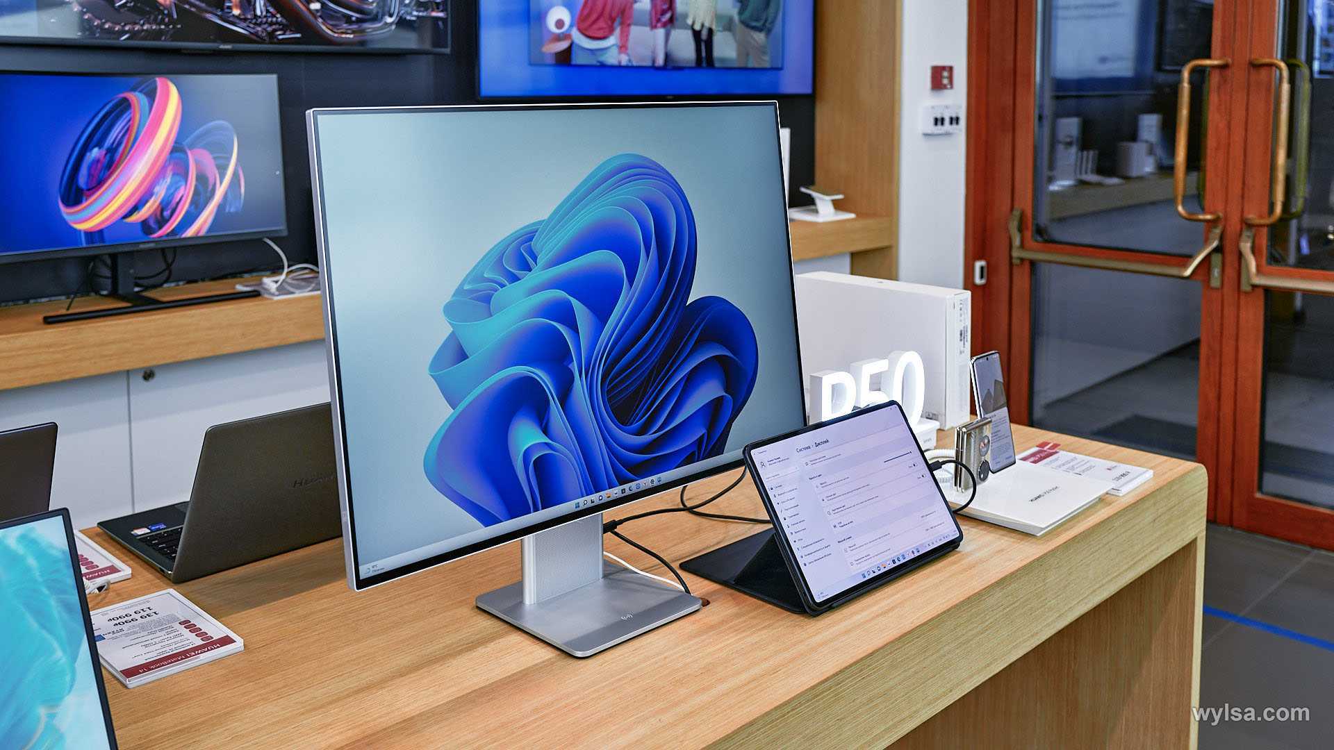 Планшет можно подключить и к другим дисплеям. Вот, например, крутой Huawei MateView, ради подключения к которому я пришёл в фирменный магазин Huawei на Охотном ряду: