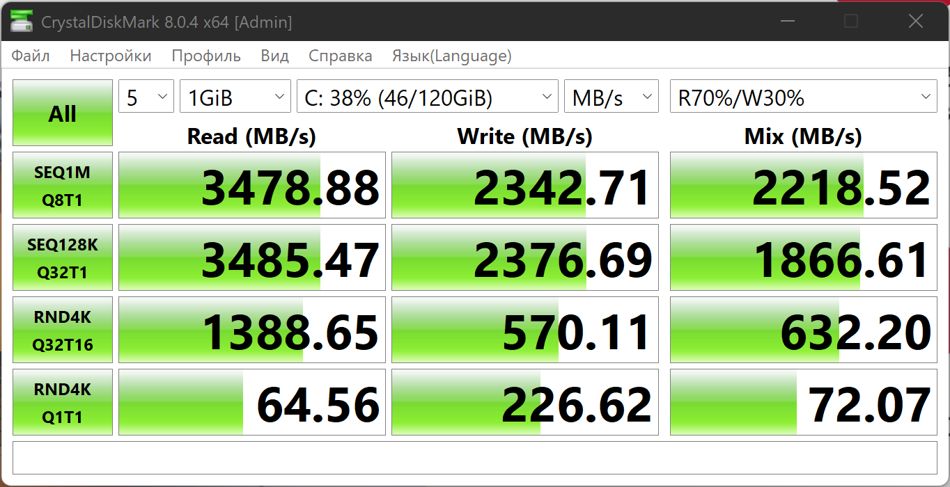 В России продаётся единственная версия. Она получила 16 ГБ типа LPDDR4x и 512 ГБ встроенной типа NVMe PCIe. Вот результаты разных бенчмарков: