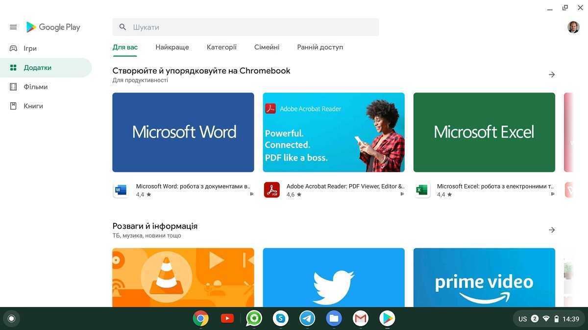 На сегодня, наверное, большинство хромбуков могут запускать приложения Android и оснащены клиентом Google Play. Список приложений в магазине, конечно, фильтрованный, доступны только те, которые, по мнению Google, пригодны для этого типа устройств. Однако значительного поредения из-за этого не наблюдается, все, что с моей точки зрения разумно использовать на хромбуке — есть. Программы без проблем устанавливаются, добавляются в меню, запускаются и работают. В сеансовом режиме, то есть «запустил — сделал что надо — закрыл» — вопросов практически нет.
